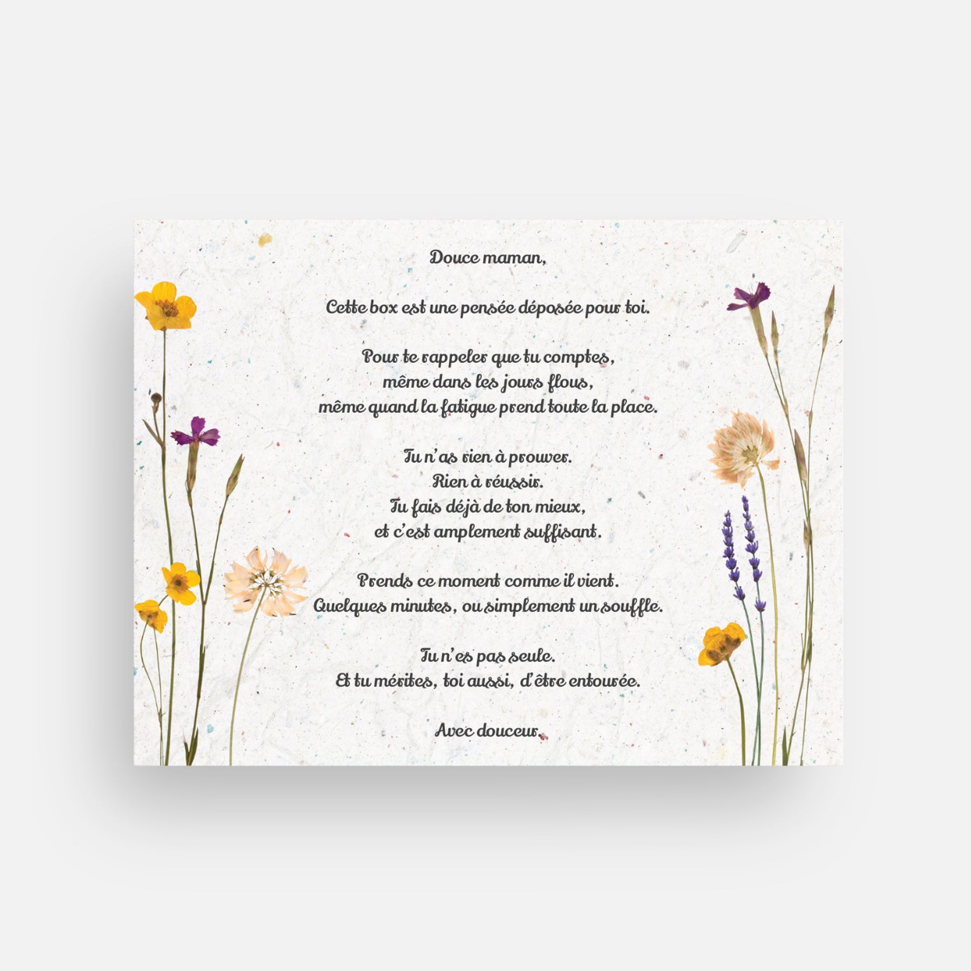 Chaque box est prĂ©parĂ©e Ă la main avec attention et respect de lâintention choisie.